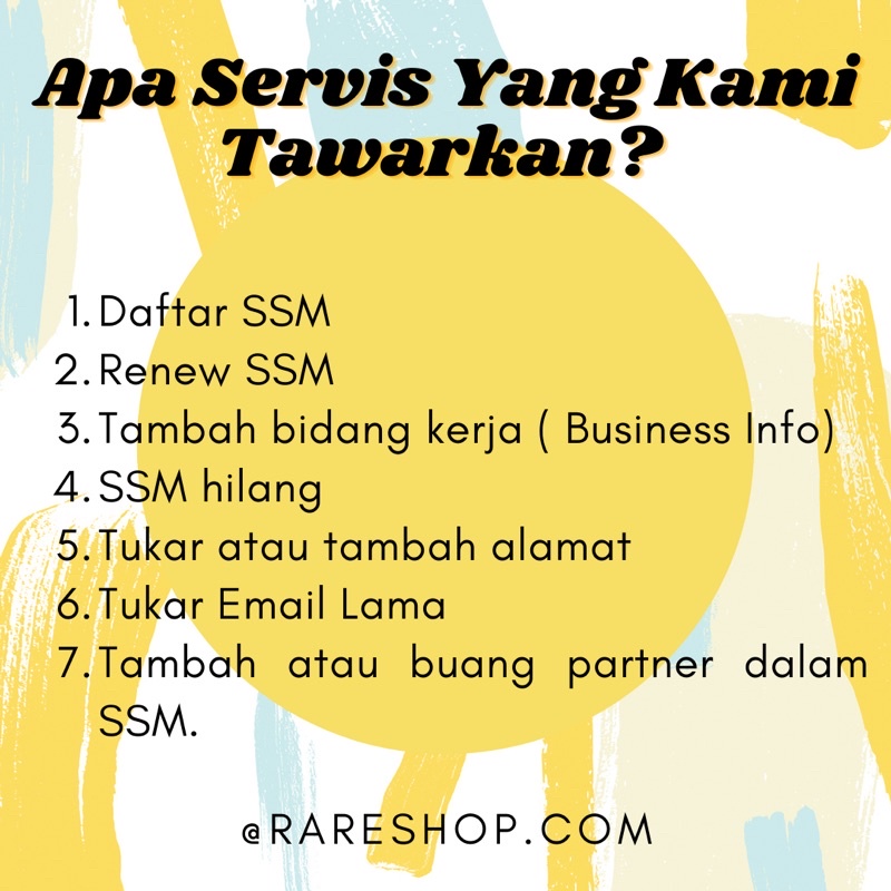 Tukar alamat, tambah bidang, tutup ssm, tambah cawangan.